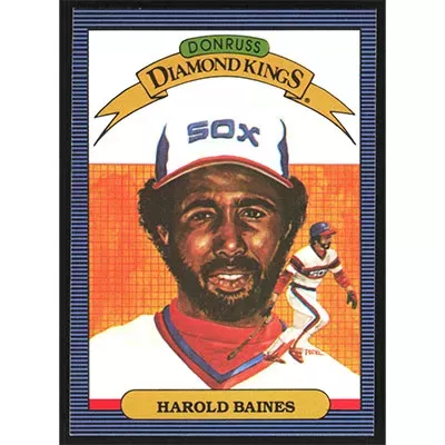 This is a 1986 Donruss Harold Baines Diamond Kings baseball card. The card is #13 and pictures show condition.
