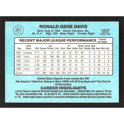 This is a 1986 Donruss Ron Davis baseball card. The card is #364 and pictures show condition.