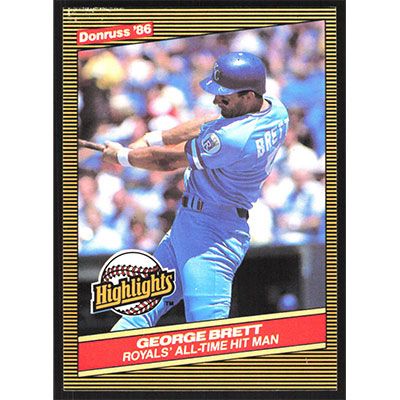This is a 1986 Donruss Highlights George Brett baseball card. The card is #3 and pictures show condition.