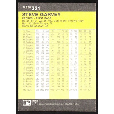 This is a 1986 Fleer Steve Garvey baseball card. The card is #321 and pictures show condition.
