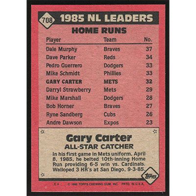 This is a 1986 Topps Gary Carter All-Star baseball card. The card is #708 and pictures show condition.