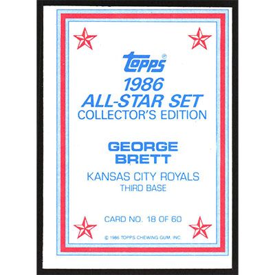This is a 1986 Topps Glossy Send-Ins George Brett baseball card. The card is #18 and pictures show condition.