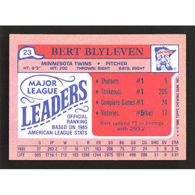 This is a 1986 Topps Mini Leaders Bert Blyleven baseball card. The card is #23 and pictures show condition.