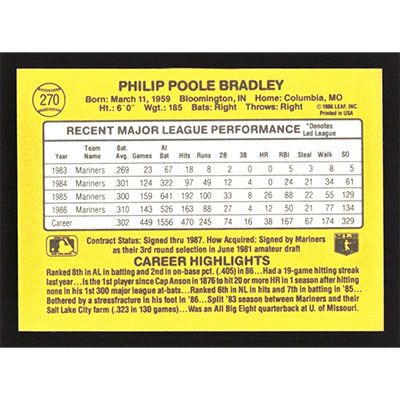 This is a 1987 Donruss Phil Bradley baseball card. The card is #270 and pictures show condition.