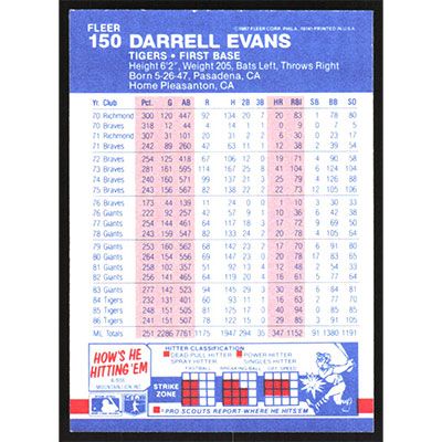 This is a 1987 Fleer Darrell Evans baseball card. The card is #150 and pictures show condition.