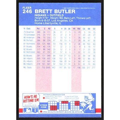 This is a 1987 Fleer Brett Butler baseball card. The card is #246 and pictures show condition.