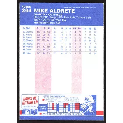 This is a 1987 Fleer Mike Aldrete baseball card. The card is #264 and pictures show condition.