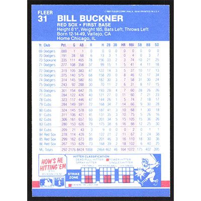 This is a 1987 Fleer Bill Buckner baseball card. The card is #31 and pictures show condition.