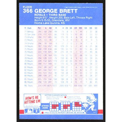 This is a 1987 Fleer George Brett baseball card. The card is #366 and pictures show condition.