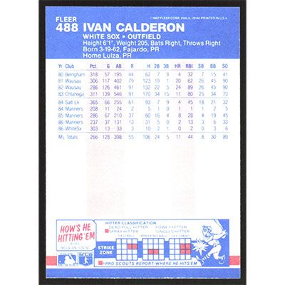 This is a 1987 Fleer Ivan Calderon baseball card. The card is #488 and pictures show condition.