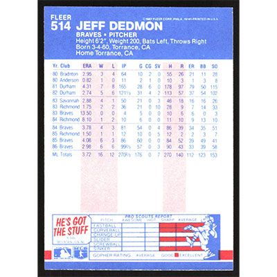 This is a 1987 Fleer Jeff Dedmon baseball card. The card is #514 and pictures show condition.