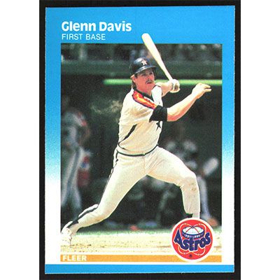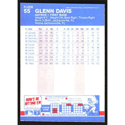 This is a 1987 Fleer Glenn Davis baseball card. The card is #55 and pictures show condition.