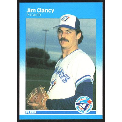 This is a 1987 Fleer Glossy Jim Clancy baseball card. The card is #223 and pictures show condition.