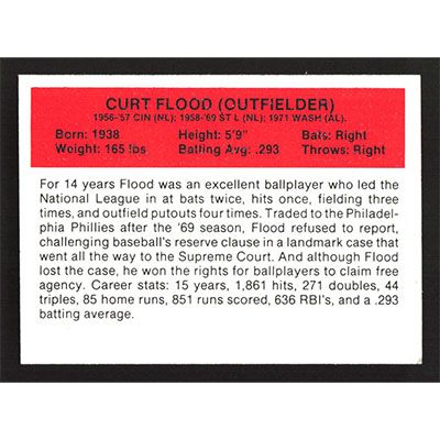 This is a 1987 Hygrade All-Time Greats Curt Flood baseball card. The card is #NNO and pictures show condition.