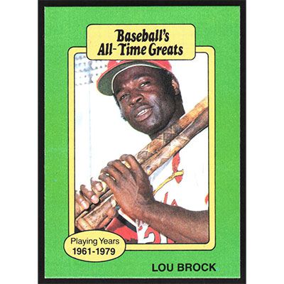 This is a 1987 Hygrade All-Time Greats Lou Brock baseball card. The card is #NNO and pictures show condition.