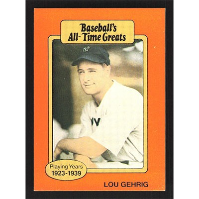 This is a 1987 Hygrade All-Time Greats Lou Gehrig Orange baseball card. The card is #NNO and pictures show condition.