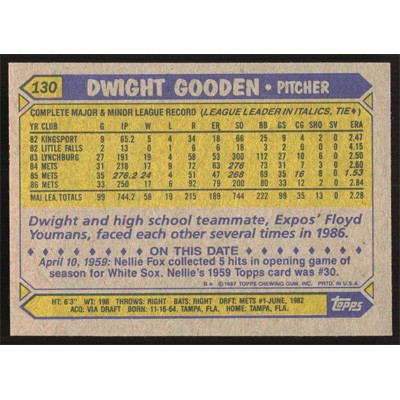 This is a 1987 Topps Dwight Gooden baseball card. The card is #130 and pictures show condition.