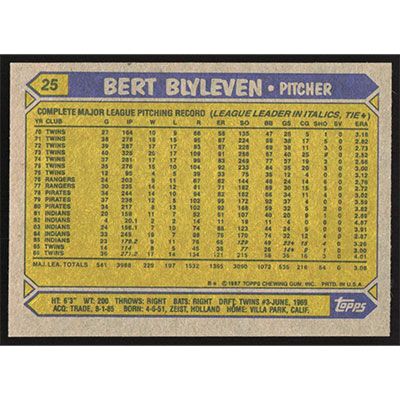 This is a 1987 Topps Bert Blyleven baseball card. The card is #25 and pictures show condition.