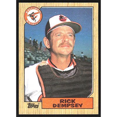 This is a 1987 Topps Rick Dempsey baseball card. The card is #28 and pictures show condition.