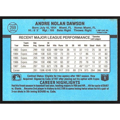This is a 1988 Donruss Andre Dawson baseball card. The card is #269 and pictures show condition.