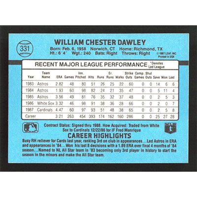 This is a 1988 Donruss Bill Dawley baseball card. The card is #331 and pictures show condition.