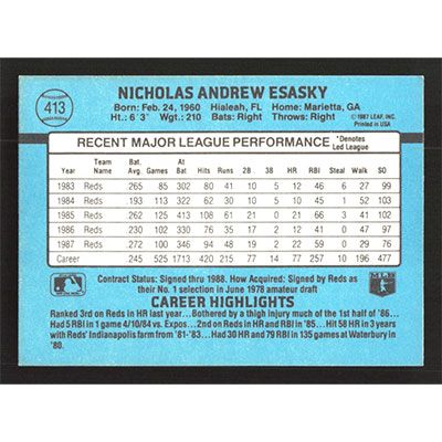 This is a 1988 Donruss Nick Esasky baseball card. The card is #413 and pictures show condition.