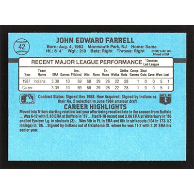This is a 1988 Donruss John Farrell Rated Rookie baseball card. The card is #42 and pictures show condition. Team(s): Cleveland Indians Rookie Card (RC)