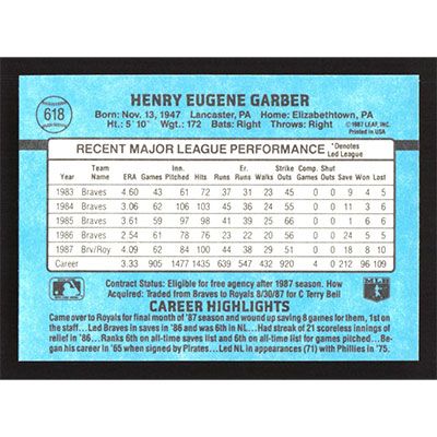 This is a 1988 Donruss Gene Garber baseball card. The card is #618 and pictures show condition.
