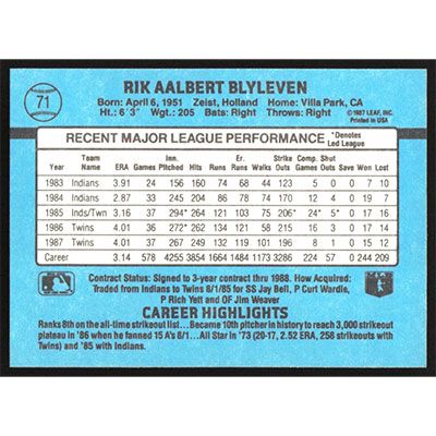This is a 1988 Donruss Bert Blyleven baseball card. The card is #71 and pictures show condition.