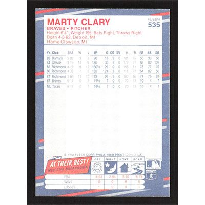 This is a 1988 Fleer Marty Clary baseball card. The card is #535 and pictures show condition.