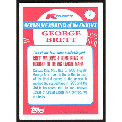 This is a 1988 K-Mart George Brett baseball card. The card is #3 and pictures show condition.