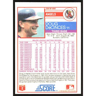 This is a 1988 Score Doug DeCinces baseball card. The card is #239 and pictures show condition.