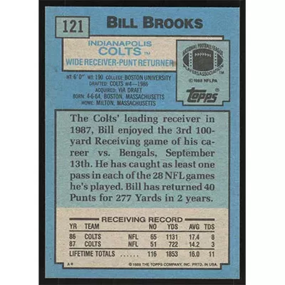 This is a 1988 Topps Bill Brooks football card. The card is #121 and pictures show condition.