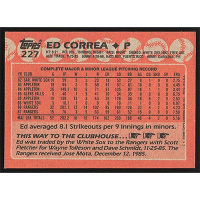 This is a 1988 Topps Ed Correa baseball card. The card is #227 and pictures show condition.
