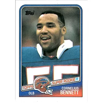 This is a 1988 Topps Cornelius Bennett Super Rookie football card. The card is #230 and is in NM-MT condition.