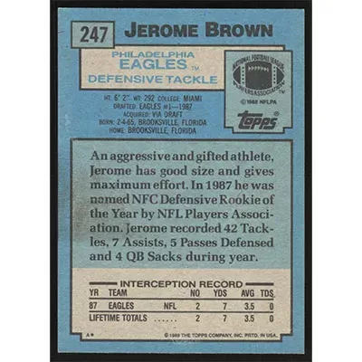 This is a 1988 Topps Jerome Brown football card. The card is #247 and pictures show condition.