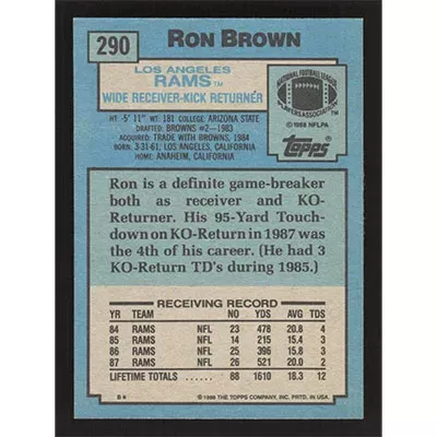 This is a 1988 Topps Ron Brown football card. The card is #290 and pictures show condition.