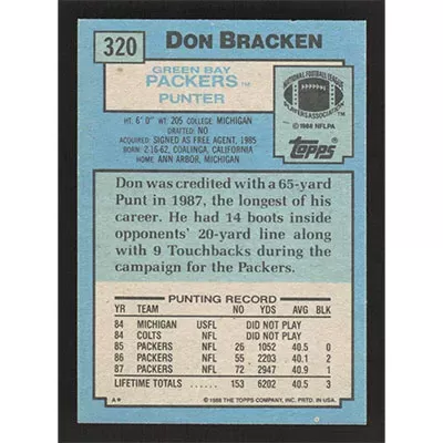 This is a 1988 Topps Don Bracken football card. The card is #320 and pictures show condition.