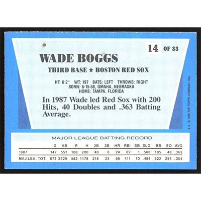 This is a 1988 Topps Rite-Aid Team MVP's Wade Boggs baseball card. The card is #14 and pictures show condition.