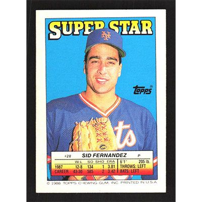 This is a 1988 Topps Stickers Sid Fernandez and Rickey Henderson Super Star Backs/Foil baseball card. The card is #20/155 and pictures show condition. Team(s): New York Mets/New York Yankees