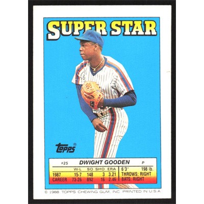 This is a 1988 Topps Stickers Super Star Backs Dwight Gooden baseball card. The card is #25 and pictures show condition.