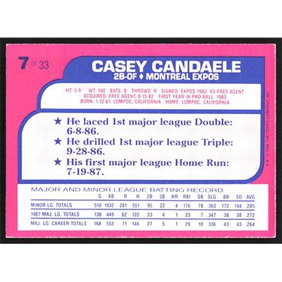 This is a 1988 Topps Toys'R'Us Rookies Casey Candaele baseball card. The card is #7 and pictures show condition.