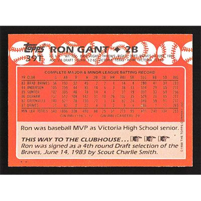 This is a 1988 Topps Traded Ron Gant baseball card. The card is #39T and pictures show condition.