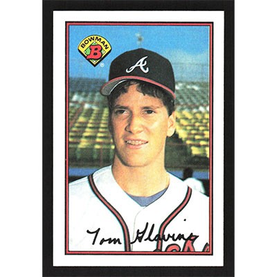This is a 1989 Bowman Tom Glavine baseball card. The card is #267 and pictures show condition.