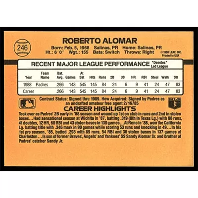 This is a 1989 Donruss Roberto Alomar baseball card. The card is #246 and pictures show condition.