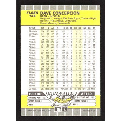 This is a 1989 Fleer Dave Concepcion baseball card. The card is #156 and pictures show condition.