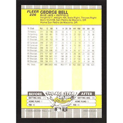 This is a 1989 Fleer George Bell baseball card. The card is #226 and pictures show condition.