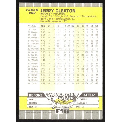 This is a 1989 Fleer Jerry Gleaton baseball card. The card is #282 and pictures show condition.