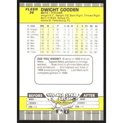 This is a 1989 Fleer Dwight Gooden baseball card. The card is #36 and pictures show condition.