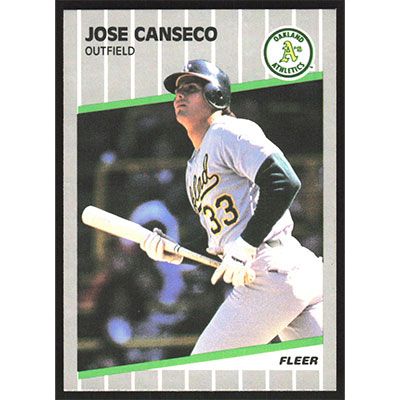 This is a 1989 Fleer Jose Canseco baseball card. The card is #5 and pictures show condition.